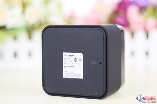 海信PX1900四周只有正面的logo及红外接收区和背面的接口。为了加入散热口,盒子底部稍微要小一圈,在底座周围安置散热孔避免了视觉上的不协调。底座的材质与机身周围 不同,取而代之的是具有防滑效果的橡胶。在标签的一边还有一个“reset”键,方便机器在必要的情况下还原。