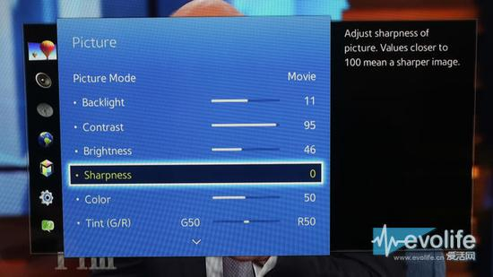 还有一些电视产品的设定非常古怪,尤其是比较早期的电视机,锐化永久性开启。或者即便将锐度调节至0,仍能在画面中看到明确的边缘加强,如去年Vizio P系列,虽然最后Vizio发布了软件升级用以解决此问题。