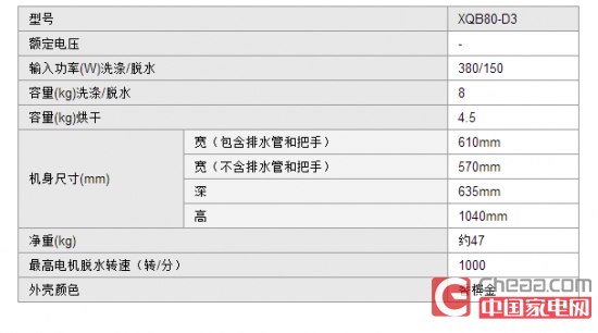 编辑点评:8kg超大洗涤容量,4.5kg超大烘干容量,以及超宽的内筒设计,可使用户一次洗涤烘干更多的衣物,更方便,更省心;儿童安全设计,使洗衣更安心;桶洗净/桶干燥程序,健康安心;可自编程序,自由更随心。松下独有的高光斜筋不锈钢内筒设计提高了洗涤、桶洗净的的效率。