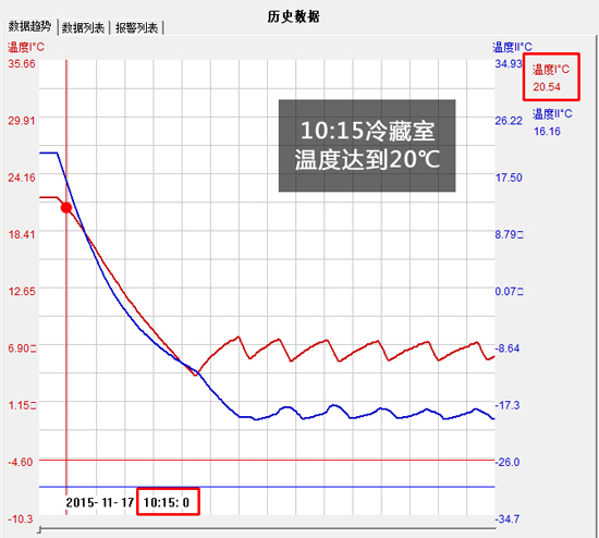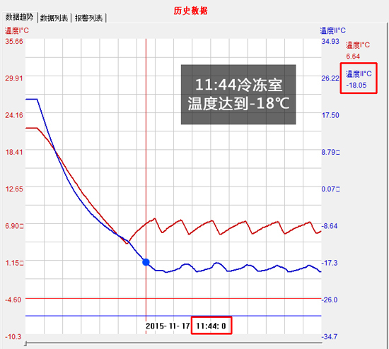 4、冷藏室温度降到5℃、冷冻室温度降到-18℃后测试结束。
