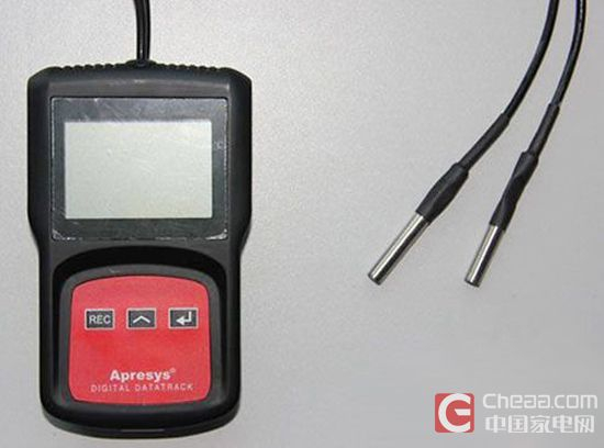 2、将APRESYS 179-T2双温度记录仪的两个温度探头分别放入冷藏室与冷冻室内,并保持感温探头悬空。启动冰箱电源。
