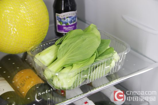 步骤2:将冰箱内装满食材、水果和饮料等,模拟日常家庭的使用环境,然后将油菜放入冷藏室冷藏24小时。