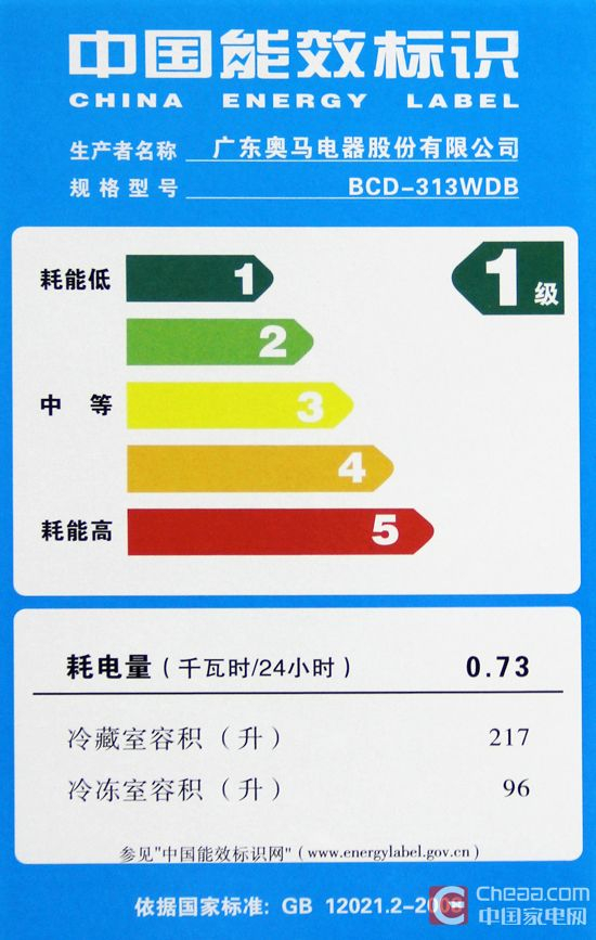 奥马BCD-313WDB冰箱的总有效容积为313升,其中,冷藏室容积217升,冷冻室容积96升。如果按照人均使用冰箱容积70-80升左右来计算的话,那么这款冰箱完全能够满足三口、或者四口之家的日常使用。