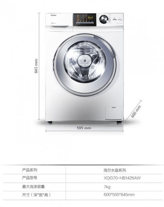 产品推荐:海尔 XQG70-HB1426AW 7公斤 水晶系列 变频滚筒洗烘一体机