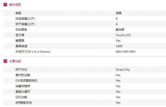 推荐产品:LG WD-A14398DS 8公斤 洗烘一体 DD变频 滚筒洗衣机