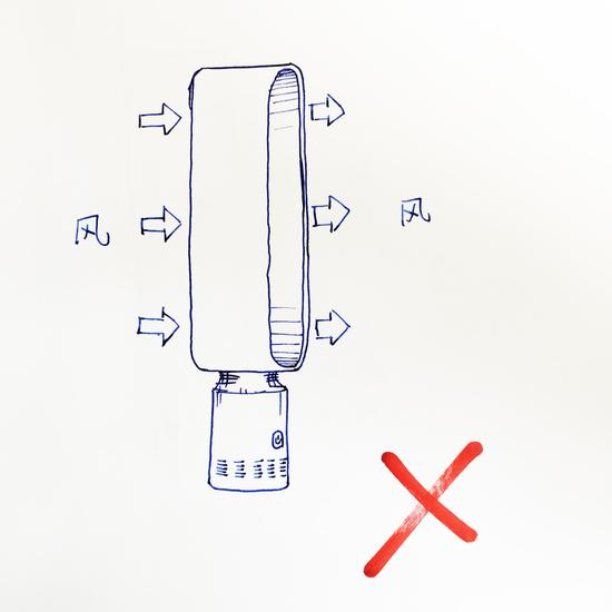 上面这张图呢,是一款无叶风扇。从外观上看,风经过这个圈儿后,被来自西方的神秘力量给予强大的能量,并转化为动能的形式表现,从前面喷射而出。如果你认为是这样,那你你就真的too young, too simple, sometimes naive了。无叶风扇真正的原理是下图这样的。