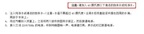 某品牌加湿器产品的部分使用说明