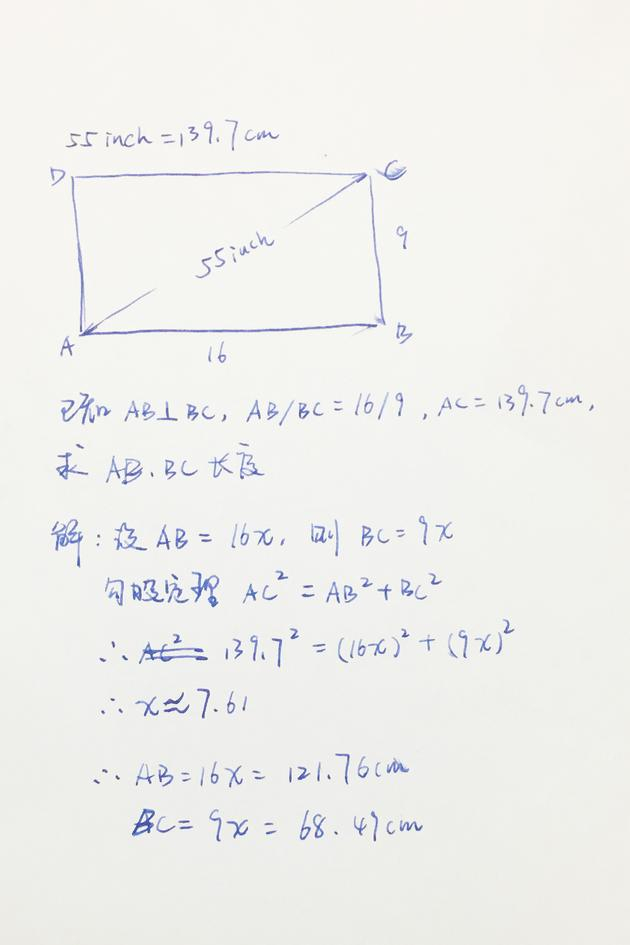 以NHK标准,55寸电视换算下,由下图的计算过程可得,应该在2米左右的范围观看。(老杨同学虽然现在在靠文字吃饭,但劳资真的是理科生好么!数学不是体育老师教的!BTW我体育就没怎么及格过好伐?)
