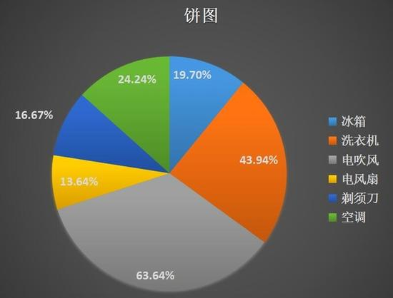 为了确定参加测试的“选手”。我们先进行了一轮预选赛,问卷上的选项都是普及率很高,也是我们身边最常使用的一些家电产品。对66份样本进行统计后,我们发现,电吹风得票最高,比例达到了63.64%,洗衣机次之,为43.94%,而选择空调的人占总数的24.24%。
