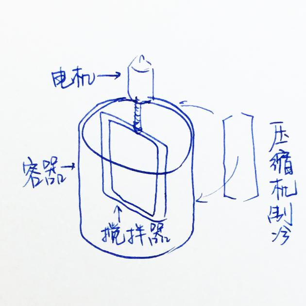 其实这东西的原理和上述制作过程类似,将材料搅匀,冷却凝固。具体结构如下图,容器内有搅拌器,同事容器外部还有小型压缩机用于冷却食材。