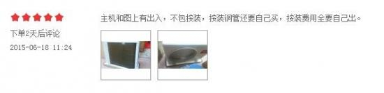 同时,消费者对于网购家用中央空调的反馈意见也比家用空调多,虽然大部分网友表示满意,但细看留言也不乏质疑之声。例如,有消费者反映到货产品有瑕疵,或安装工人态度不好,更多的则是对安装收费额度的惊愕,比消费者预想的要高。除了抱怨,我们也能从留言看出网购家用中央空调安装上的诸多现状,很多消费者都感叹家用中央空调的安装比自己想象中复杂,工人忙碌一天才完成安装,更有提前上门查看后第二日再去安装的。
