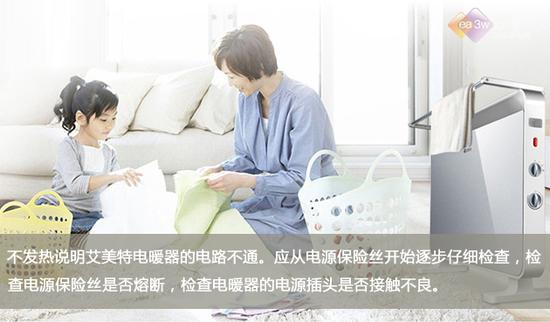 对于装有风扇进行送风对流的艾美特电暖器,若送风电动机不转,也会造成艾美特电暖器外壳过热。