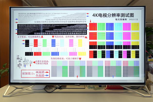 在清晰度上,对于线条和点的处理是完全到达4K标准的,但红色箭头的文字,对于笔画过于复杂的稍有模糊的状况。总的来说达到了4K屏幕应有的表现。