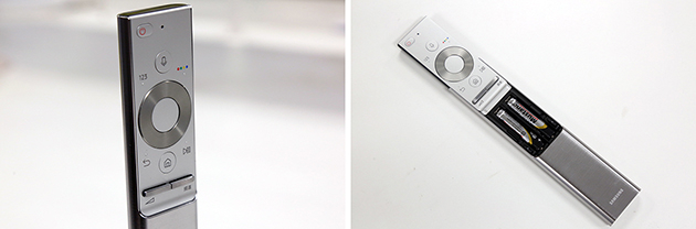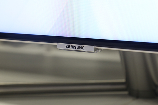 正面下方则是三星Logo,与Q8C不同的是,没有了白色的背光。Logo下方的红色指示灯得到了保留,可显示电视目前状态。