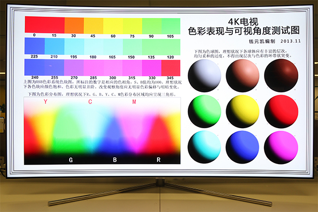 在色彩还原方面,可以发现除黄色绿色之间稍有偏差,其他色还原准确、右侧色球色彩间过渡平滑。