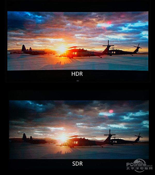 从实际的对比来看,HDR的表现效果几乎拥有压倒性的优势。我们可以看到HDR带来的不仅仅只是亮度的提升,而是在更高的亮度范围中,携带有更丰富的色彩层次、灰度层次,以及对比度,这是在SDR时代不曾想象的。