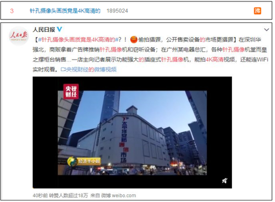 为什么近年来,摄像头偷拍事件呈愈演愈烈之势?究其原因,跟技术进步导致的电子产品成本下降,网络平台购物的匿名性和便捷性都有关。就在求真君写这篇文章的时候,又看到热搜,央视揭露线下贩卖的针孔摄像头已经可以拍摄4K的超清视频!求真君手上这个顿时相形见绌啊,不由感慨不法分子为了色心和利益真的是绞尽脑汁,比手机厂商还肯“堆料”。