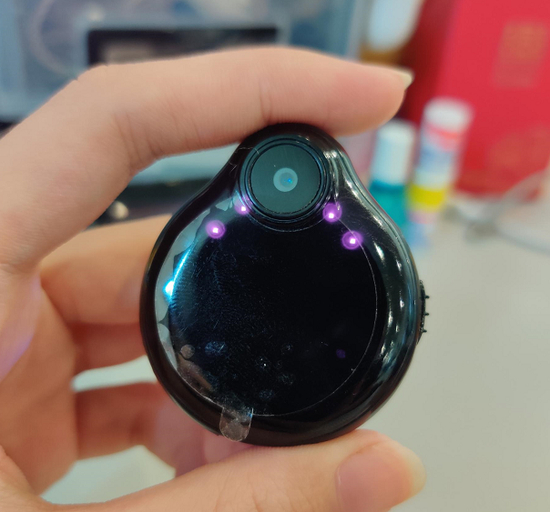 按照客服的说法,和下动图类似,开启机体的背面的多个LED灯圈,通过红蓝色灯光交替闪烁,以发射出光线,而遇到针孔摄像头时被反射,从而确定针孔摄像机的位置↓