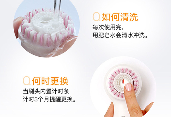 很多人担心洁面仪经常用水冲洗会发生故障,所以会选择干洗,或者只用少量的水打湿脸,这样都是不对的。因为皮肤和机器如果都是干燥或者半干燥状态,即便是轻微的揉搓也会让皮肤受到伤害,而且没有足够的水分洗面奶就不容易起泡。所以,在使用前一定要把刷头浸湿哟。