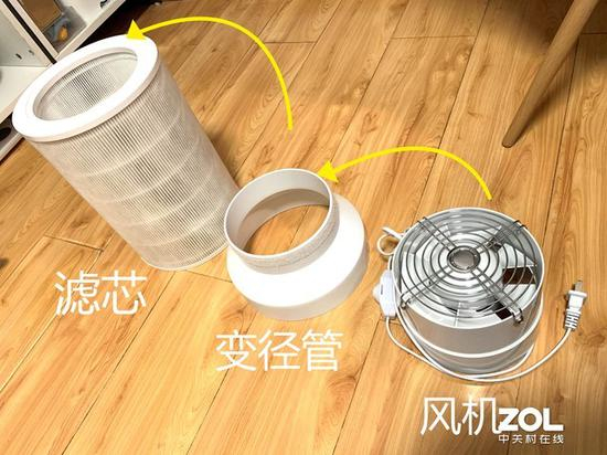 DIY过程没啥好说的,几乎都是成品,滤芯即使是仿的尺寸也很标准,风机直接找老板装的金属罩,调速电源线只有两根线,直接接上风机即可,风机部分装完后,再将风机与变径转换头滤芯依次连接就大功告成了,如果变径管与滤芯之间连接不够紧密可以用透明胶带缠一圈。