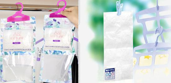 除湿袋有氯化钙的,也有硅胶的。氯化钙它的优点是便宜,某宝上最便宜的算下来一块多一包,梅雨天放在衣柜里,一天就能看到下层有出水,大概一周左右水就集满了,不过这种除湿袋后期水量增多之后总有点担心挂钩承不住重。