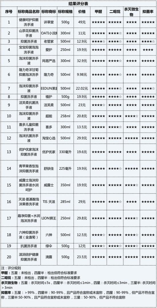 上海消保委发布20款抗(抑)菌洗手液对比试验结果