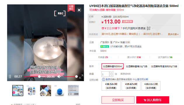 《消费者报道》以“加湿器杀菌剂”为关键词在各大电商平台上进行搜索,发现一款名为“UYEKI日本进口加湿器除菌剂”在淘宝、京东、豌豆公主等诸多电商平台均有在售。