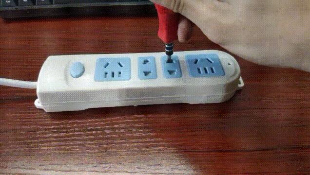 再来看看安全门,这款排插也还是带有安全门的,不过这个安全门的质量嘛,约等于没有,我同样用螺丝刀轻轻一戳,就能把安全门戳开了。