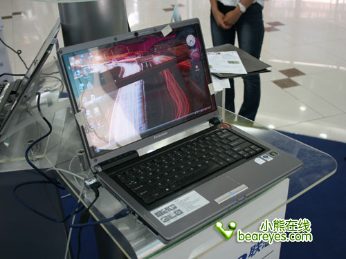配置方面:Intel Pentium Dual Core T2330处理器,主频1.6GHz,Intel GM965芯片组,1GB DDR2内存,160GB硬盘,GMA X3100集成显卡,COMBO刻录光驱,14.1英寸宽屏,130万有效像素摄像头,整机重量约2.35公斤,预装微软视窗Vista家庭高级版。