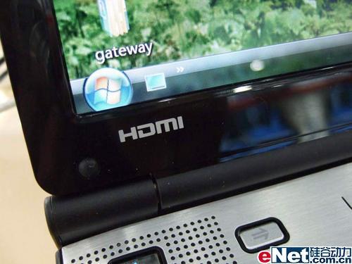 作为一款新品笔记本,Gateway T6821c的外观设计与前辈T6818c极为接近,可以断定采用的是同一个模具。不过在顶部设计上很不一样,因为该机采用了钢琴漆面,黑亮的像一面镜子,看起来要高贵很多。此外本机还配备了HDMI v1.2 高清晰度多媒体接口,连接电视的效果要好过VGA和DVI,给用户带来更高的视觉享受。