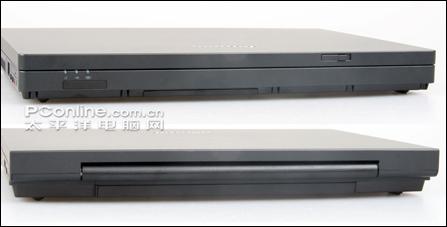 右侧:分别是光驱、两个并列的USB2.0接口、直流电源输入接口和电脑锁孔。由于没有标配无线网卡,甚至连原有的Mini PCI插槽也去掉了,因此无线网卡开关就完全没有必要留着了。