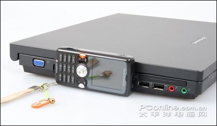 接口布局井然有序,同时左右各有两个USB接口,十分合理,不过USB接口的两两距离较近,在很多时候会影响操作。另外,除了同样缺失了IEEE 1394接口和S-Video接口以外,出于节省成本考虑,还去掉了Modem接口(并不算过分,毕竟现在看来用Modem上网已经有点OUT了)、多合一读卡器(也没太大影响)、以及无线开关(无标配无线网卡)。