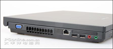 左侧:分别是VGA视频输出、Lan接口、两个并列的USB2.0接口、外置Mic输入和耳机输出、Express 45/34mm卡插槽。两个USB接口靠得太近,如果接入稍微胖一些的设备的话,另外一个接口基本上不能用了。