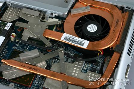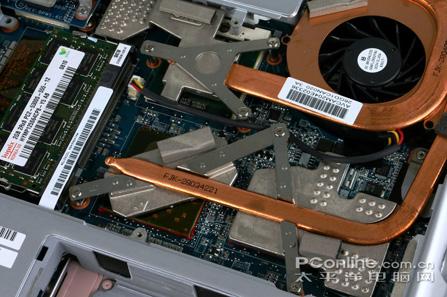 在热导管遮掩下的CPU、芯片组与独立显卡