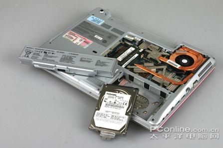 采用了高频的T5850处理器的索尼VGN-CR382,散热上可谓是一大考验,用户会不禁发出疑问:在散热工作上是否还那么不遗余力呢?掀开它的后盖之后,索尼VGN-CR382的散热装置打消了我们的疑虑。双铜制热导管与双出风口是散热效果的双重保险。