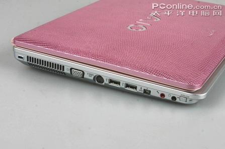 这样,索尼VGN-CR382不但有了时尚靓丽的外观色彩,更让笔记本的品味提升了不少,高雅而又不乏高贵,相信这也是其迷倒不少时尚爱美白领女性的本事之一。但这种设计也引来了一些争议,有人说粉红色加上皮革纹理的搭配不如同型号的黑色或银色加皮革纹理的搭配好看。当然,索尼VGN-CR382的这样设计好坏就见仁见智了。