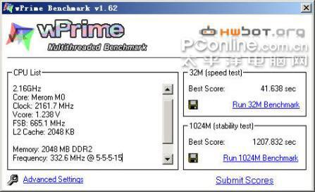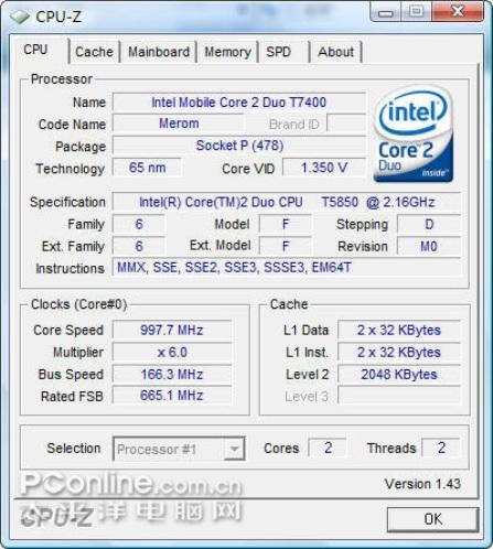 处理器 | Intel Core 2 Duo T5850@2.16GHz |