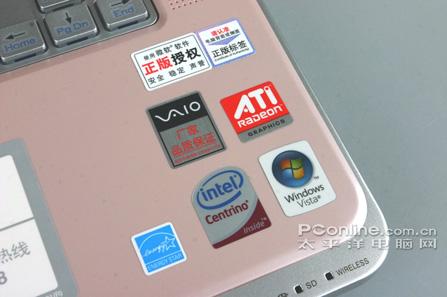 一拿到索尼VGN-CR382,扑面而来的是让女性一见钟情的粉红色机身,也让人想起索尼另一领域的产品BRAVIA的“看心中的红”的广告词,看来红色是索尼最近产品发展的重点配色之一。当然,仅仅在笔记本配上颜色对索尼是远远不够的。索尼在VGN-CR382的屏幕顶盖采用了仿皮质的面料,呈现出浓厚的纹理效果,同时有利于成本控制。