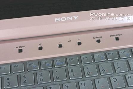 索尼VGN-CR382的快捷键可用十分丰富来形容。位于键盘上方的有索尼特有AV MODE启动键、音量控制键、摄像头快门键、与液晶屏开关键。这些快捷键无不体现这索尼VGN-CR382对影音玩家的无微不至。加上媒体播放的快捷键,这些都是他们最喜爱的功能,而摄像头快门键与液晶屏开关键也简化了用户的日常操作。不过与键盘的按键相比,这些快捷键的面积的确过小了,手感非常一般,需要改进。