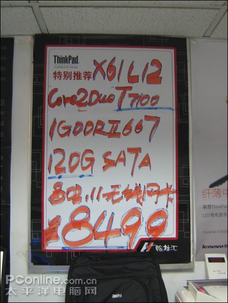 广东行情近日收到商家的消息,ThinkPad旗下的轻薄笔记本产品X61系列,当中一款采用了T7100酷睿2双核处理器的ThinkPad X61 7675L12,近日其售价由原来的9999元,猛降到8499元,降幅高达1500之巨,性价比十分优秀。