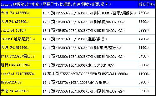 | R61i-7742-A19 | T5550(1.83)/1G/160G/COMBO/14.1宽/128独/1394/安全/无/千/蓝/Vista/4芯 | 6900 |