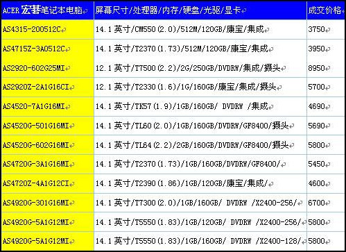 宏基笔记本报价单