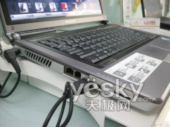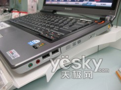 接口方面,联想 天逸 F41AT2390后部有1个VGA接口;左侧是RJ45接口、RJ11接口、1个Express卡、1个USB2.0接口、1个IEEE1394接口以及5合1读卡器(xD,SD,MS,MS Pro,MMC);右侧是1个S端子、DVD刻录光驱、2个并列的USB2.0接口和耳机/麦克风插孔。接口布局得比较合理,显得紧凑又不过于密集。
