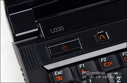 对于IdeaPad U330的输入体验,我们更想多加介绍的是它的功能快捷键操作。大家可以看到,在关机的状态下,U330看得见的功能快捷键只有两个,一个是电源键、一个是影音中心快速启动,均位于键盘左上方。事实上在开机以后你会发现更多的人性化设计,马上出了两组功能快捷键和一组状态指示灯。值得欣赏的是,这些功能快捷键均采用目前十分流行的触感式设计,时尚感十足。