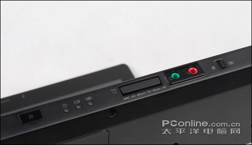 机身前端则分别设置了红外端口、多功能读卡器、音频输入/输出、以及无线开关。读卡器支持MMC/MS/MS Pro/SD/SD Pro/xD等存储卡。红外端口估计是用于影音中心的遥控器信号接收,但由于本次测试的是工程样机,因此并没有见到遥控器。