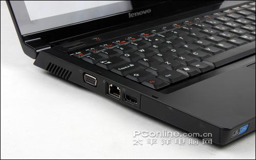 左侧接口有VGA、RJ45网卡以及HDMI高清输出。另外主散热风口也设置在左侧,不会对右手鼠标操作造成任何的舒适度影响。