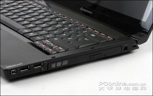 右侧分别有1394接口、2×USB接口、光驱部件,以及电脑接口和机器硬件锁。