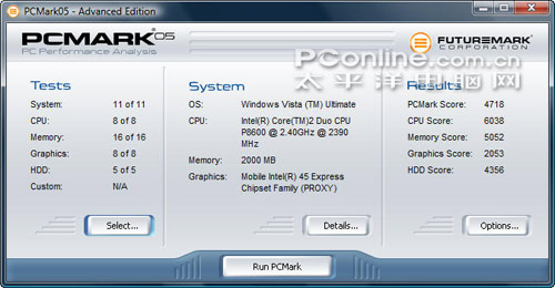 PCMark05 | 总分 | 4718 |