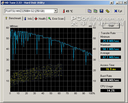 硬盘稳定性也相当不错,不过突发传输速率较为一般,CPU占用率较高