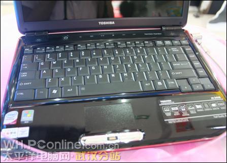 东芝M300/M800系列笔记本均采用钢琴漆镜面上盖,有别于上代的蓝玛瑙星光漆,在顶盖漆内部加入横条暗纹,质朴中略加点缀,另具韵味。键盘操作区也一改乳白色外观,采用的是更有商务味道的全黑烤漆设计。在键盘上方有电源显示灯、影音操作快捷键一共7个LED冷光效果指示灯和两个水晶harman rdon扬声器。130万像素摄像头镶嵌的屏幕边框上。两款机型在外观上最大的区别是体型,重量以及色彩。在接口方面,14寸的M306没有HDMI接口有点遗憾。